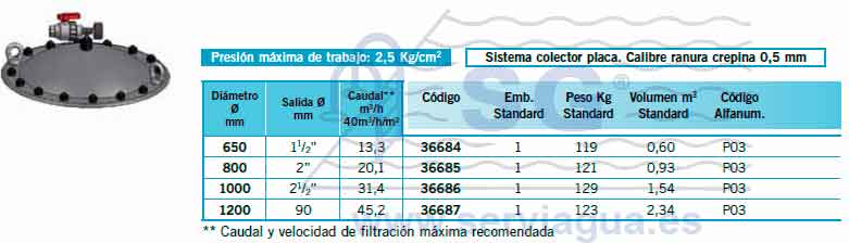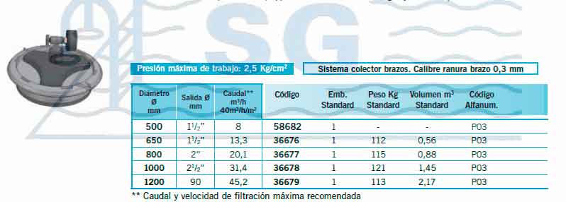 - El lecho filtrante es de 1 m y está disponible con sistema colector de brazos y con sistema colector de placa.