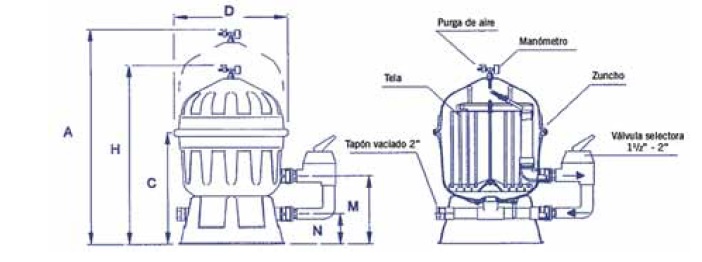 Carga de diatomeas no incluida. Velocidad de filtración 4,9 m³/h x m².