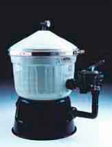 Filtro de diatomeas Clarity, construidos en poliester y fibra de vidrio. Equipados con manómetro, purga de aire y válvula selectora lateral. Carga de diatomeas no incluida. Velocidad de filtración 4,9 m3/h x m2