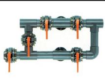 Baterías de válvulas construidas en PVC. Posibilidad de funcionamiento con 4 ó 5 válvulas.