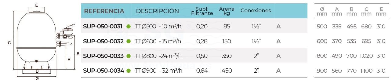 Filtro laminado Superpool TT Ø900 - 32 m³/h