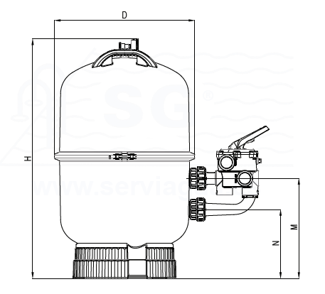 filtro ronda pro con válvula selectora 9.000 l/h Ø 500 salida 1"1/2