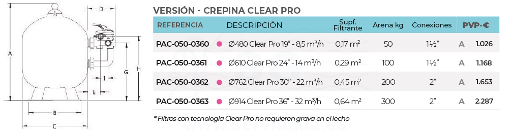 Filtro Triton Neo Clear Pro Crespina Ø610 Clear Pro 36’’ - 32 m³/h