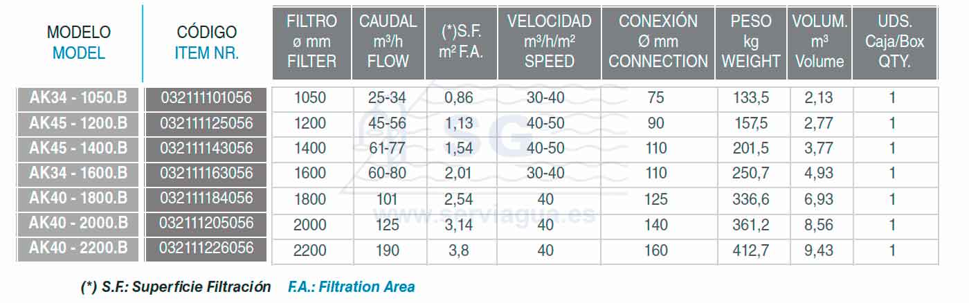 Presión de trabajo: 0,5 - 2,0 Kg/cm².