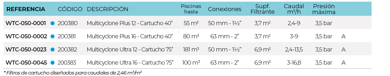 Multicyclone Plus con cartucho 12 - Cartucho 40''