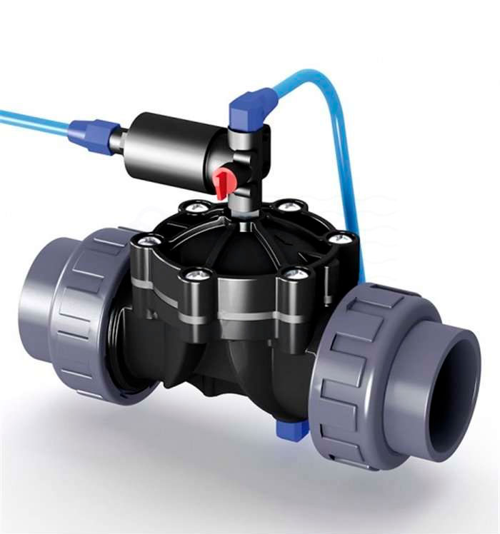 La válvula hidráulica de seguridad en el desagüe de 1 ½” está especialmente indicada para su instalación en la salida de desagüe de una válvula selectora automática en un filtro de arena de piscina.