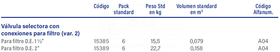 Válvula selectora filtro Clarity Para filtro D.E. 2”