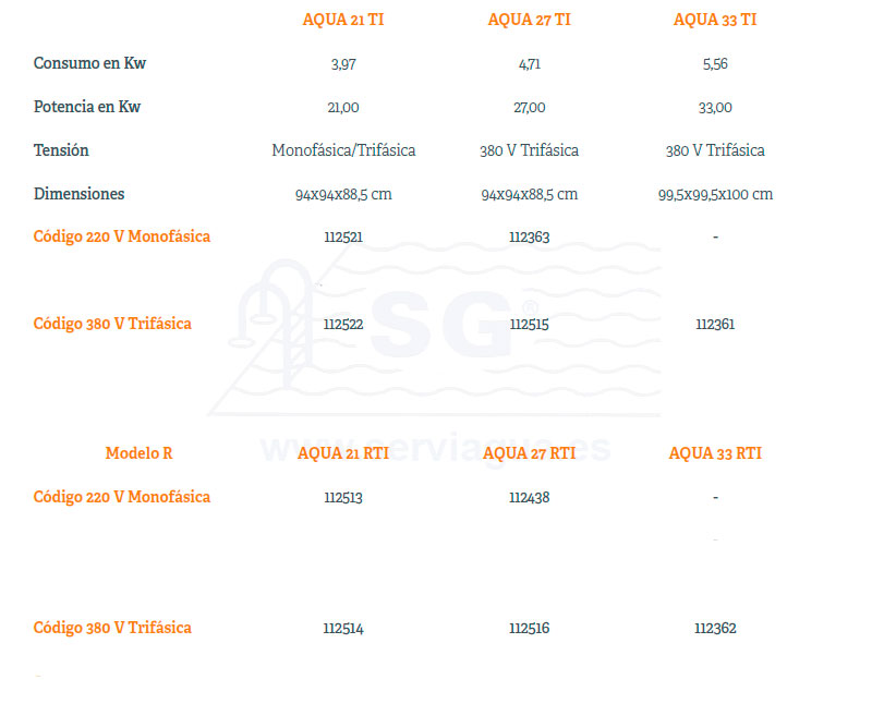 bomba de calor aqua 27 RTI 220 V Monofásica