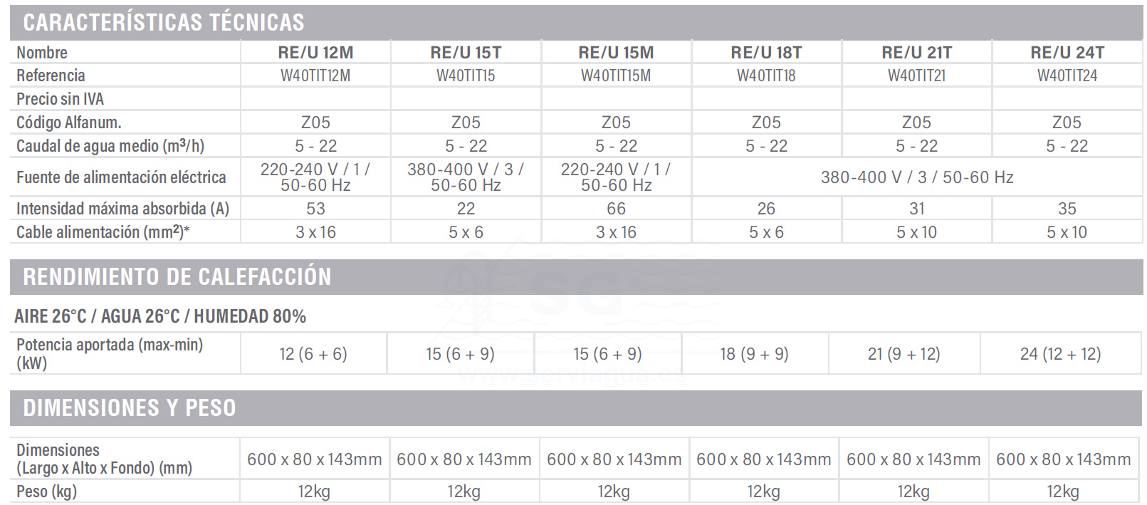 • Monofásico 230V-50 / 60Hz o trifásico 400 V dependiendo en el modelo