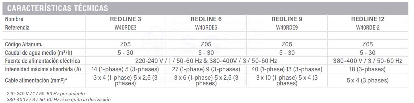 • REDLINE 12: solo 400V-50 / 60Hz trifásico