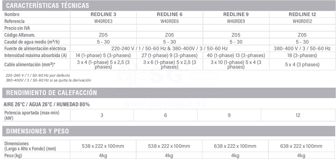 • REDLINE 3, 6 y 9: monofásico simplifi cado 230V-50 / 60Hz / trifásico 400V-50 / 60Hz de potencia