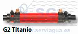 El intercambiador de calor G2 se instala en el circuito de filtración de la piscina, desde el cual el agua pasa en los tubos de titanio del intercambiador. El agua del circuito de calentamiento primario fluye a contra-corriente a través el exterior del tubo y calienta el agua de esa manera. Los intercambiadores G2 son ideales para el uso con calderas de gas o petróleo, paneles solares, bombas de calor o refrigeración.