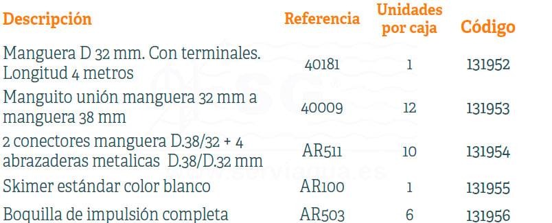 Conjuntos de distintos accesorios para piscina sobre suelo.