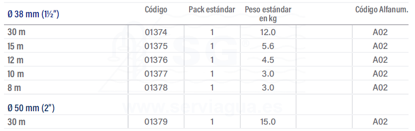 Fabricada en polietileno de color azul. Incluye terminales, excepto en la manguera de 30 m