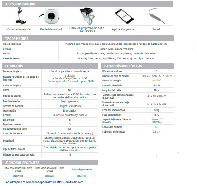 + Desplazamiento ágil : Diseñado para funcionar en piscinas de cualquier forma y en todo tipo de revestimientos/Correas de tracción /acelerómetro y giroscopio