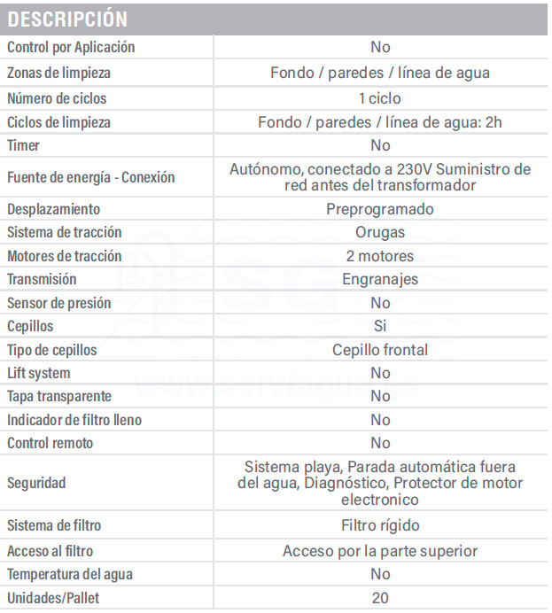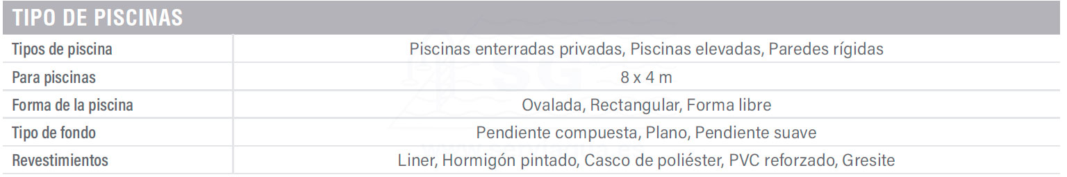Para todo tipo de piscinas planas o pendiente muy suave y de cualquier superficie con una longitud recomendada de hasta 8 x 4 metros.