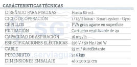 - Diseñado para limpiar fondo, paredes y línea de flotación. Además incorpora el Sistema Aquasmart y Cepillo de PVA