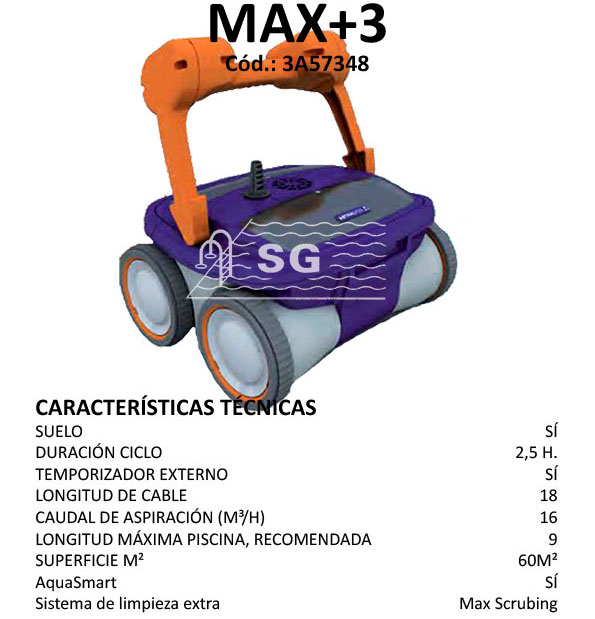 Al igual que su sistema Easy Open que permite acceder a los cartuchos de la forma más simple y limpiarlos sin necesidad de ensuciarse. El Max+ sorprende por su fácil utilización, pues incluye el sistema Plug & Play, con sólo introducirlo dentro de la piscina es suficiente para que empiece a trabajar en el suelo de su piscina.