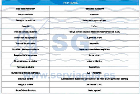 los mismos. Para un mejor rendimiento recomendamos el uso de una bomba de filtración con una capacidad de 8m3 / h. Otras ventajas técnicas son el funcionamiento silencioso, la puesta en marcha simple, la facilidad de servicio y la transmisión Integrada del engranaje,