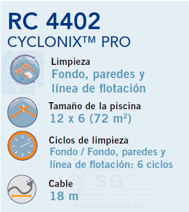 + Adaptado para piscinas con superficie resbaladiza (casco de poliéster, Gresite)
