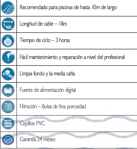 - Recomendado para piscinas de hasta 10 m. de largo.