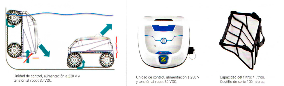 • Diseñado para poder trabajar en todo tipo de piscinas (superflcie, perfll de fondo, forma .. .).