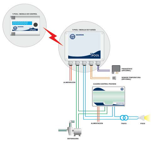 • Conocer la temperatura del agua de la piscina (Mediante un sensor de temperatura opcional).