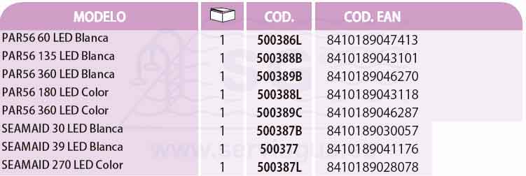 De formato universal, la lámpara PAR56 se instala fácilmente, en todos los nichos del mercado, en sustitución de la tradicional lámpara 300W incandescentes.La fuente luminosa compuesta de LED permite realizar importantes ahorros energéticos.