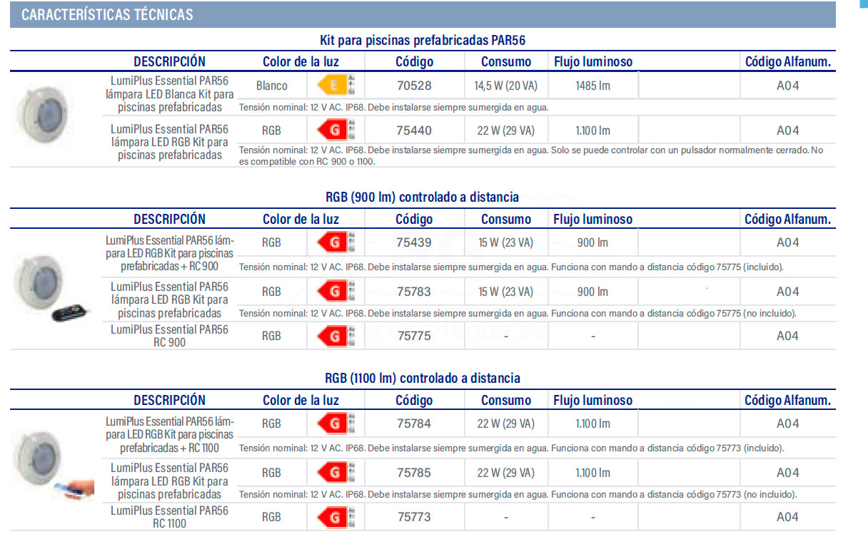 lumiplus essential PAR56 controlado distancia RGB (1100 lm) RC 1100 piscinas prefabricadas