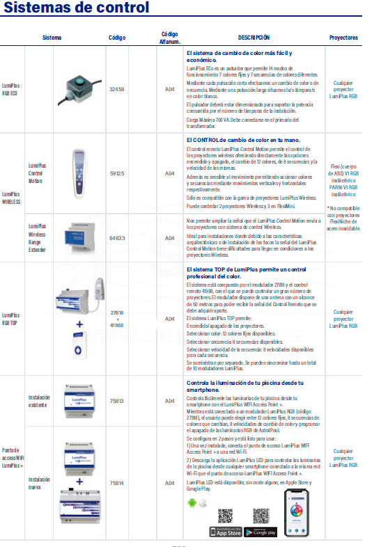 - También disponible LumiPlus wifi access point para instalaciones existentes que ya disponen del modulador LumiPlus código 3F27818.