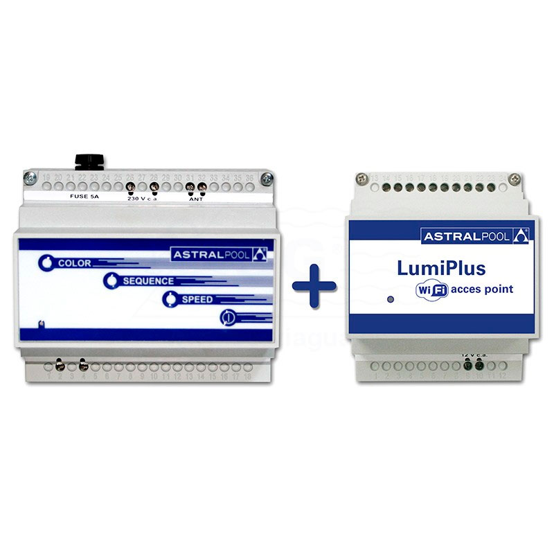 - El modulador LumiPlus Wi-Fi Access Point + permite controlar la iluminación LED de la piscina mediante un smartphone/tablet (aplicación gratuita disponible para dispositivos Apple y Android).