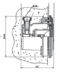 Construido en latón estampado y cromado, nicho en ABS color blanco. Lámpara dicroica de 50 w. 12 v. y 38º de abertura de haz luminoso 95 lux a 4 m. de distancia con un círculo iluminado de 2,5 m.