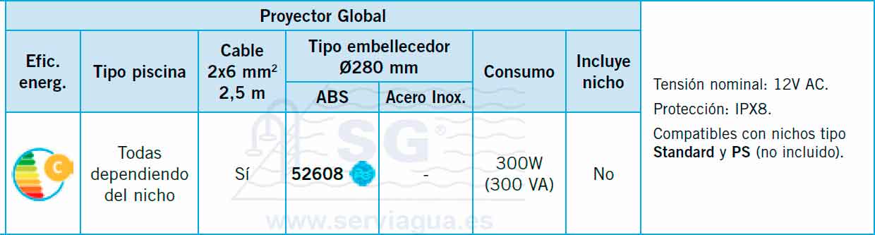 Compatible nichos AstralPool (no incluido) o cualquier nicho del mercado, con un diámetro interior mínimo de 220 mm y máximo de 235 mm