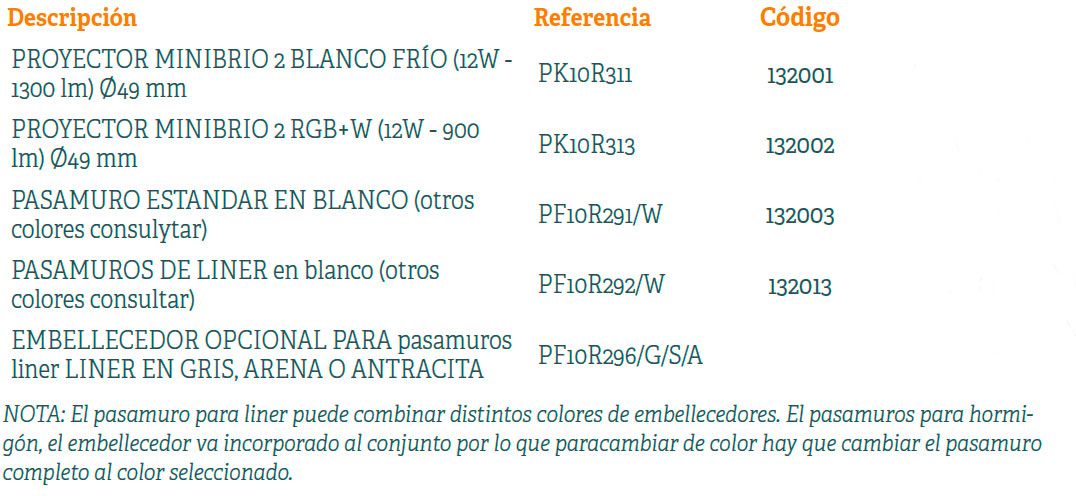 Descubre una solución para tener un MINI proyector potente y con un diseño discreto al mismo tiempo para iluminar tu piscina. Con el MINIBRIO 2 podrás optar por un mini proyector de 12W y 1200 lúmenes en blanco frío y 900 lúmenes en RGB+W. En las versiones blanco frío y blanco cálido, los proyectores son regulables. Podemos cambiar la intensidad luminosa que tengan los proyectores en todo momento. Pudiendo elegir entre un 25,50,75 o 100% de potencia de uso del proyector. Instalación sencilla directamente en los pasamuros de 1,5” estándar, o sobre la opción de un nicho para hormigón y poliéster (PF10R291) o un nicho específico para piscinas de liner (PF10R292). Embellecedor incorporado en el nicho. Para personalizar su acabado y mejorar su aspecto, el MINIBRIO 2 está disponible con varios embellecedores de color (blanco, gris, arena o antracita). Además de una versión de INOX. Opciones de embellecedor para todo tipo de piscinas y revestimientos. El MINIBRIO 2 ofrece una amplia luminosidad dentro de un pequeño tamaño para poder iluminar también toda la piscina con un mini proyector.