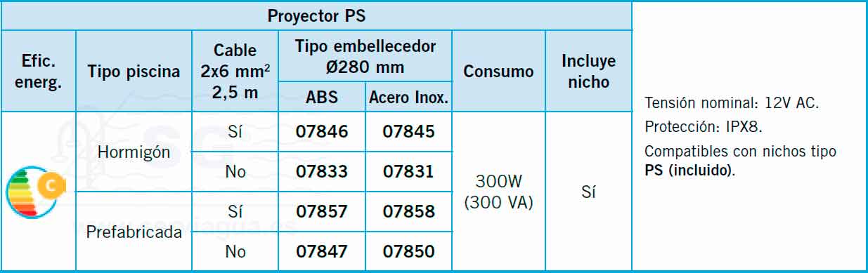 Proyector PS piscina hormigon/prefabricada - halógeno