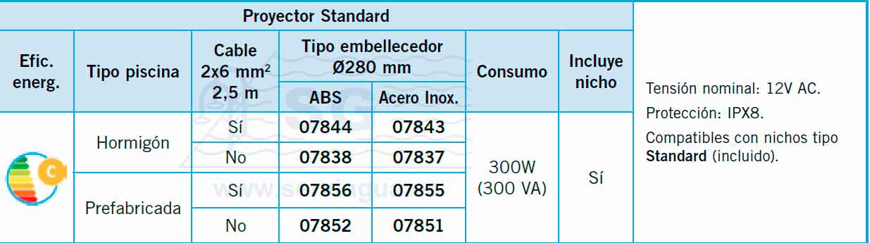 Nota: recomendacion válida para piscinas con colores claros. En piscinas de colores oscuros o de acero inoxidable se recomienda sobredimensionar la