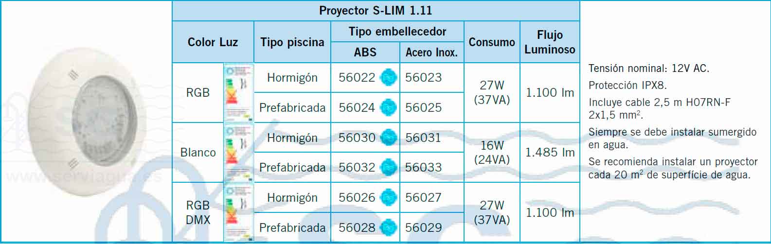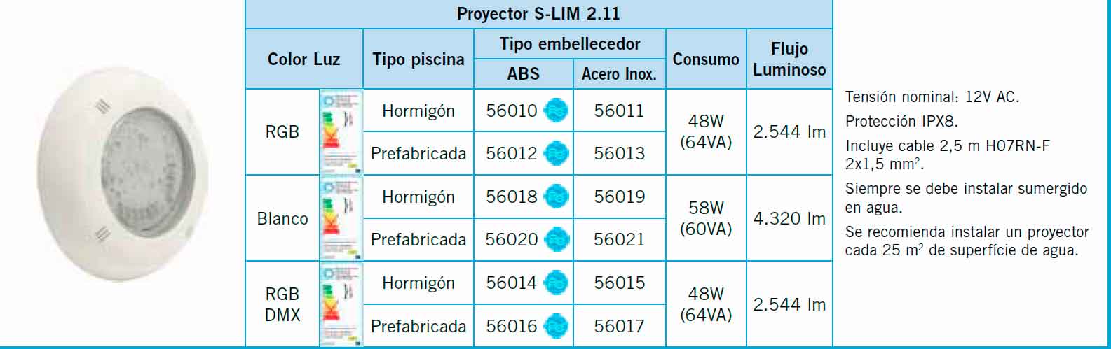 Nota: recomendaciones válidas para piscinas con colores claros. En piscinas de colores oscuros o de acero inoxidable se recomienda sobredimensionar la proporción de proyectores por m².