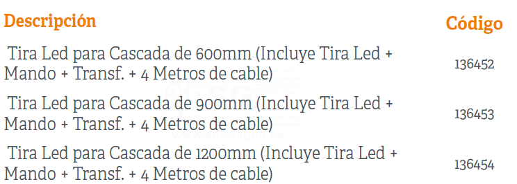 Todas las cascadas incluyen el mando, el modulador y el transformador con enchufe para conectar directamente a 220VAC.
