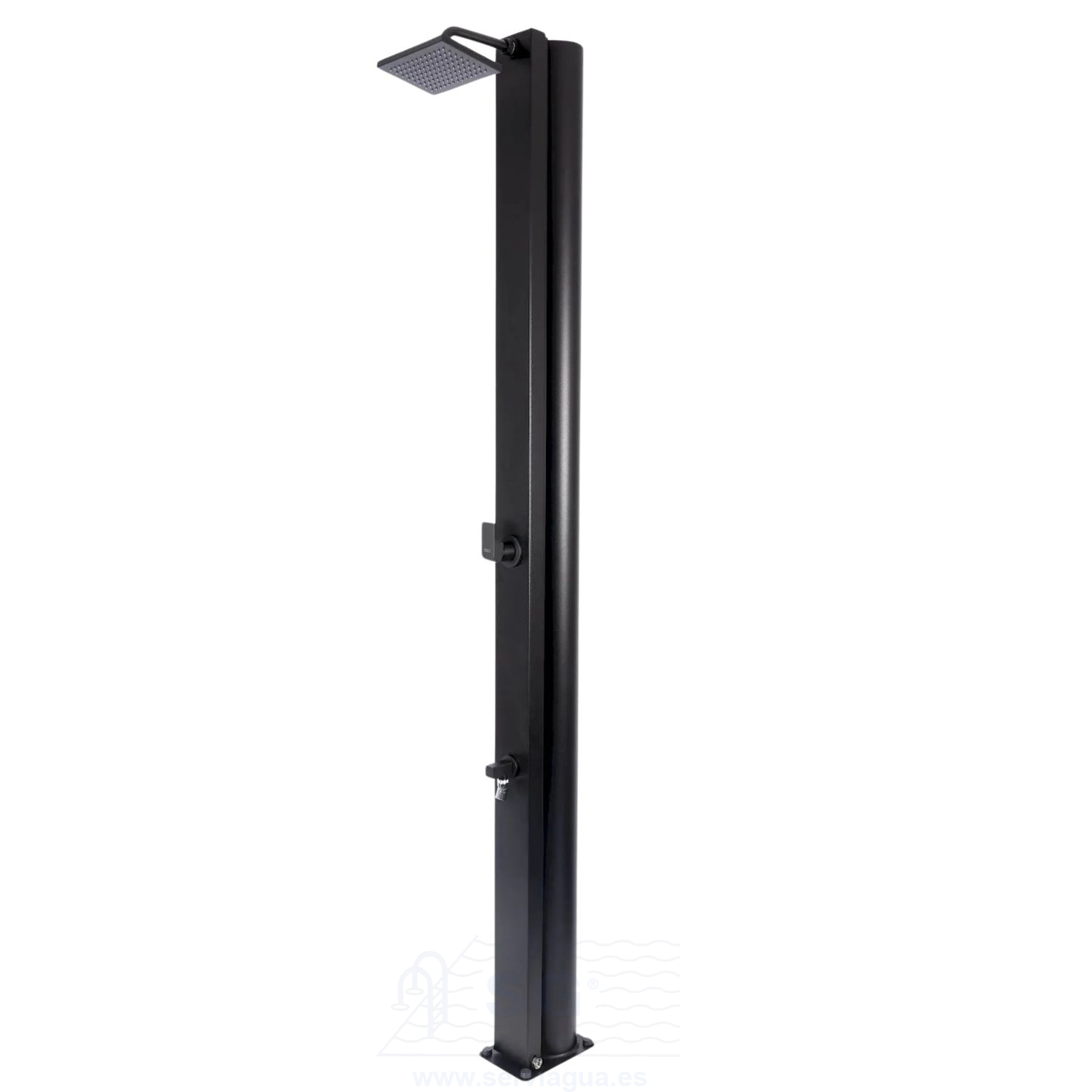 El acabado anticorrosión garantiza resistencia y durabilidad frente a la intemperie, mientras que el anclaje con pletina base y tornillos asegura una instalación firme y estable. La Black Edition es la elección perfecta para quienes buscan una ducha exterior de gran calidad, estilo y funcionalidad.