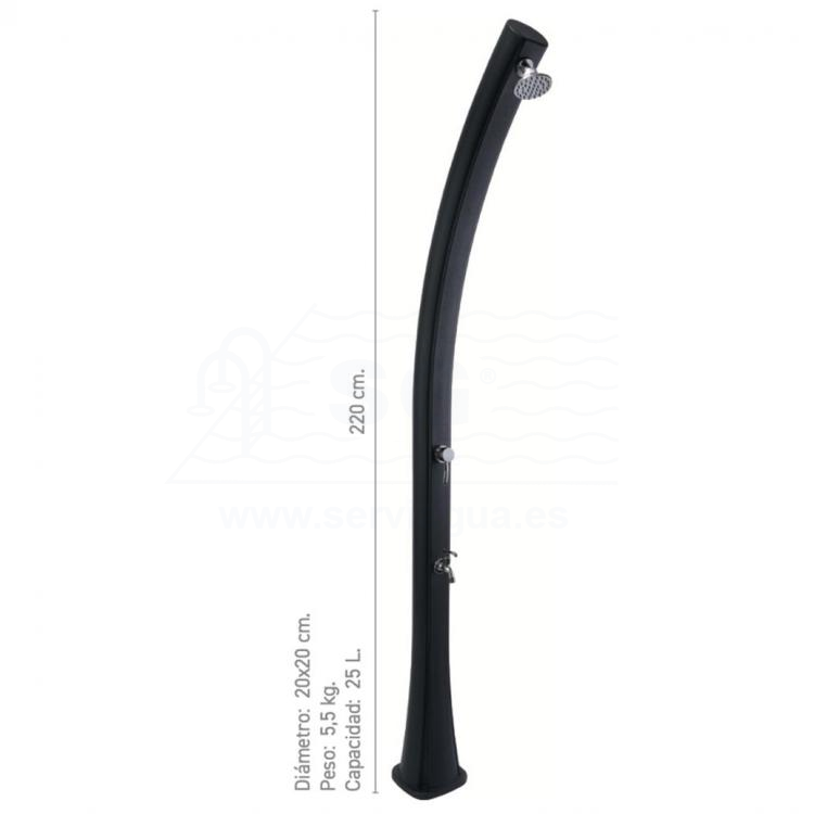 Cuerpo de aluminio negro: material que atrapa el calor solar con rapidez y resiste la intemperie sin agrietarse.