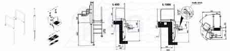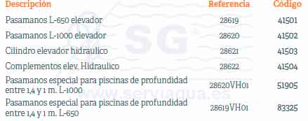 Para completar el conjunto es necesario el pasamano, junto con el cilindro hidráulico y los complementos. En piscinas con rebosadero perimetral se utilizara el pasamanos modelo L-1000.