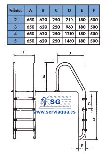 SERIE Escalera Acero Inoxidable STANDAR para piscina enterrada