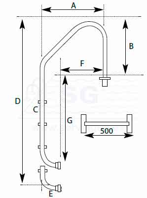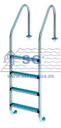 Escalera estándar en acero inox. de 43 x 1,2 mm. con anclajes y tapetas.