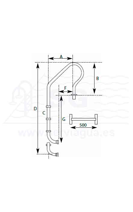 Escalera estándar en acero inox. de 43 x 1,2 mm. con anclajes y tapetas.