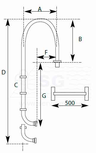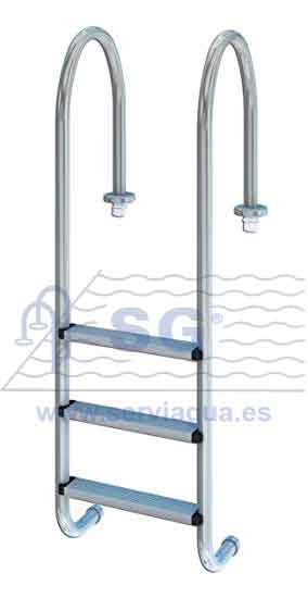 Escalera estándar en acero inox. de 43 x 1,2 mm. con anclajes y tapetas.