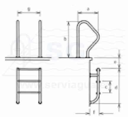Escalera estándar en acero inox. de 43 x 1,2 mm.