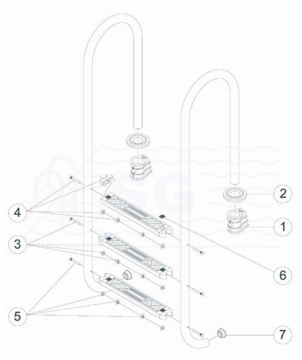 Para piscinas enterradas. Construidas en Acero Inoxidable AISI-304 acabado pulido brillante. Tubo d. 43. Peldaño en acero inoxidable.