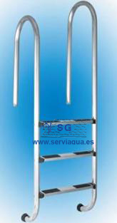 Para piscinas enterradas. Construidas en Acero Inoxidable (AISI-304 ó AISI-316) acabado pulido brillante. Tubo d. 43. Peldaño en acero inoxidable.