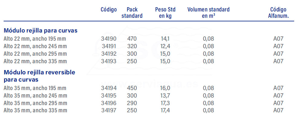 MODULO REJILLA PARA CURVAS