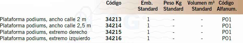 Plataforma podiums, ancho calle 2 m AISI-304
